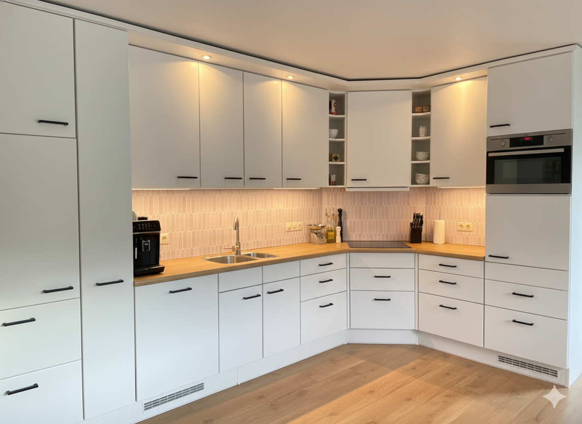 | Gemiddelde keuken (13–20 fronten) | €1.250 – €1.600 |
